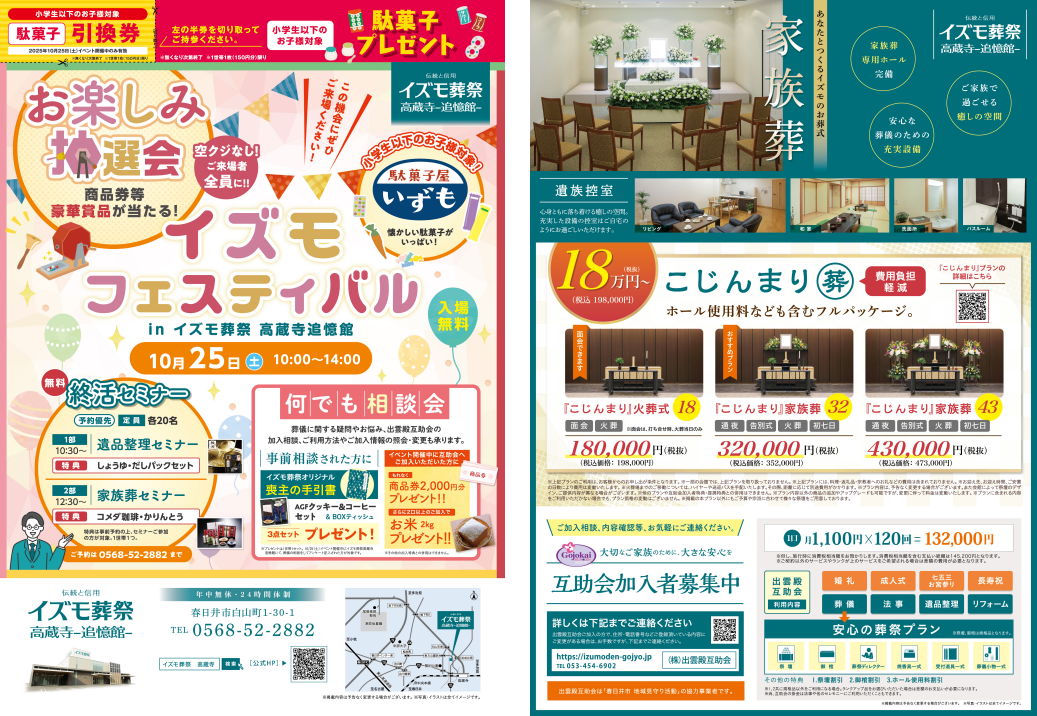 出雲殿互助会新着情報10月25日(土)イズモフェスティバル イズモ葬祭 高蔵寺~お楽しみ抽選会~