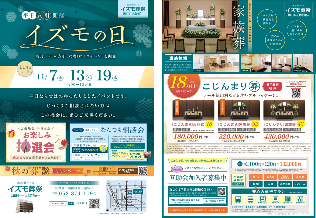 出雲殿互助会新着情報11月7日(金),13日(木),19日(水)イズモの日 イズモ葬祭 堀田追憶館