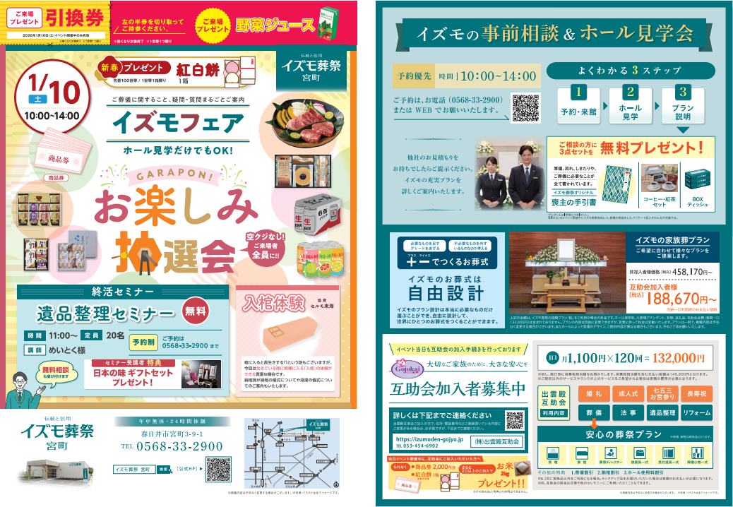 出雲殿互助会新着情報1月10日(土)イズモフェア イズモ葬祭 宮町~お楽しみ抽選会~