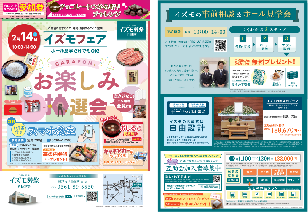出雲殿互助会新着情報2月14日(土)イズモフェア イズモ葬祭 祖母懐~お楽しみ抽選会~