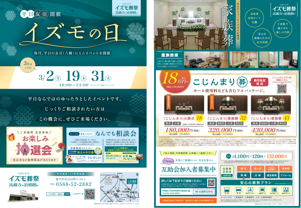 出雲殿互助会新着情報3月2日(月),19日(木),31日(火)イズモの日 イズモ葬祭 高蔵寺追憶館