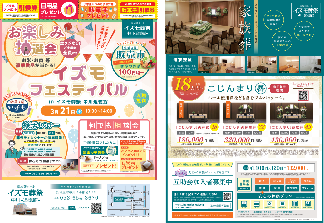 出雲殿互助会新着情報3月21日(土)イズモフェスティバル イズモ葬祭 中川追憶館~お楽しみ抽選会~