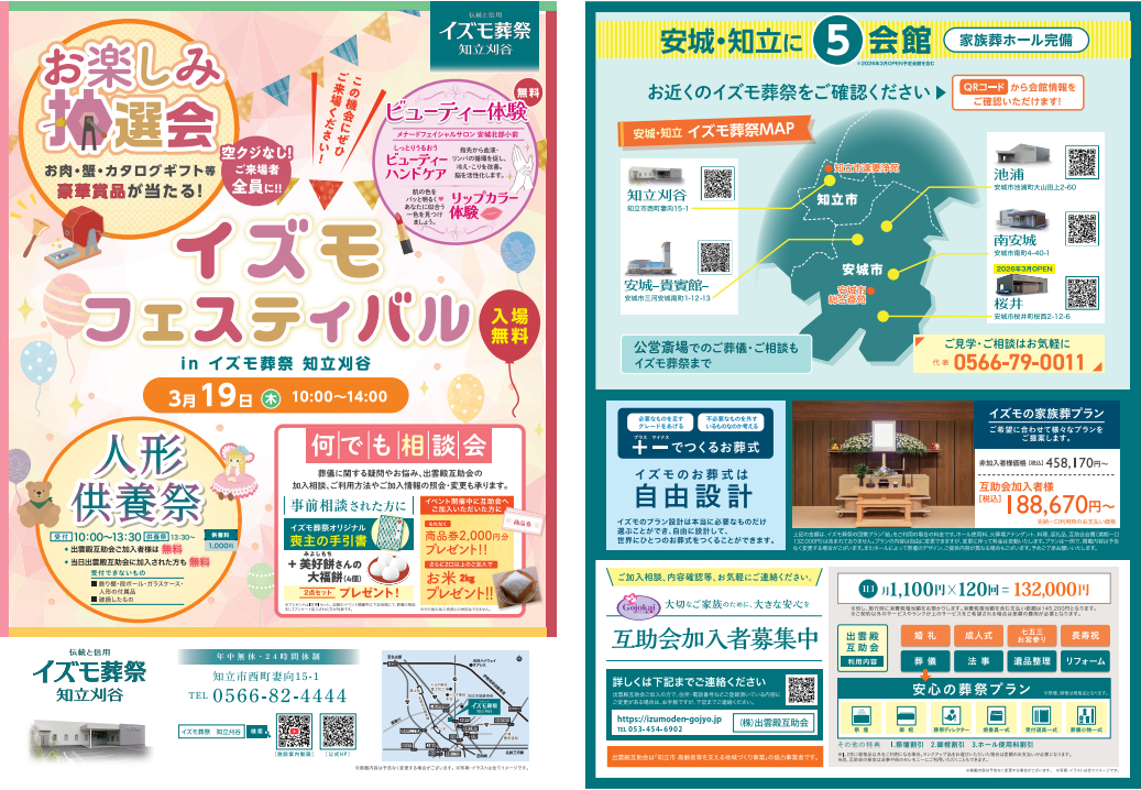 出雲殿互助会新着情報3月19日(木)イズモフェスティバル イズモ葬祭 知立刈谷~お楽しみ抽選会~